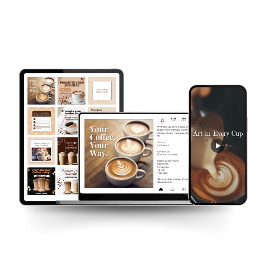 Our ready to post and customize social media images and videos for coffee shop is for you!