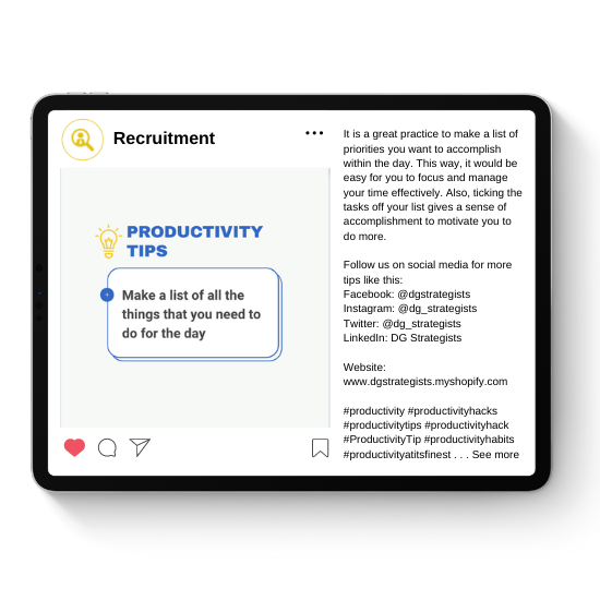 Once you avail, you will get daily social media images with captions and hashtags that you can post to promote your job ads page!